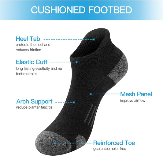 Ankle Athletic Running Socks Low Cut Sports Socks Breathable Cushioned Tab Socks for Men Women 6 Pairs